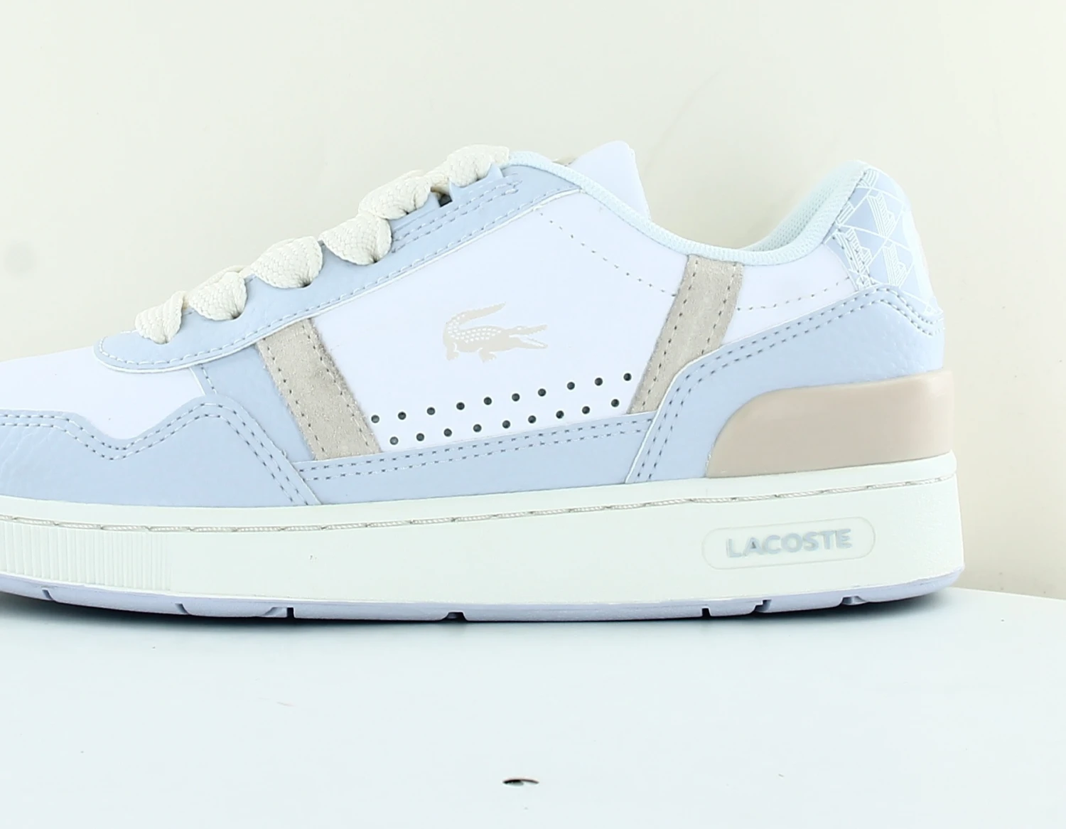 ACHETER la Lacoste Tclip premium blanc bleu ciel beige de la nouvelle collection printemps été 2023.